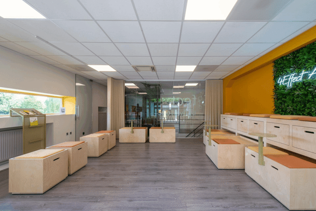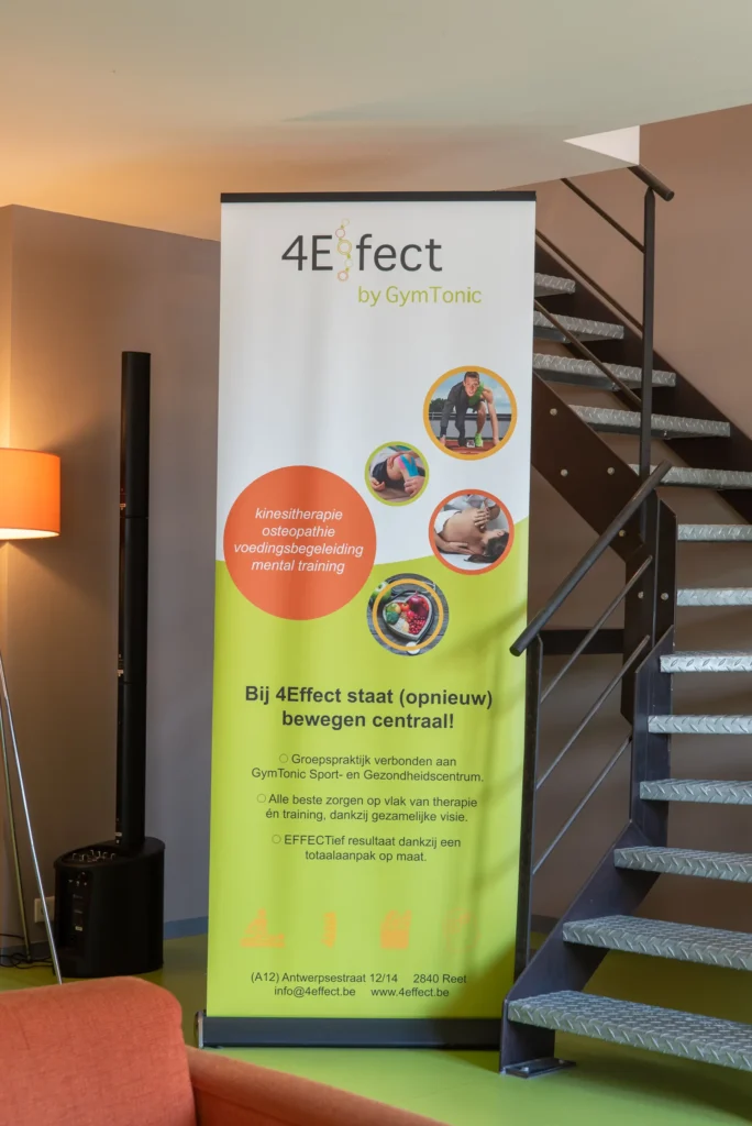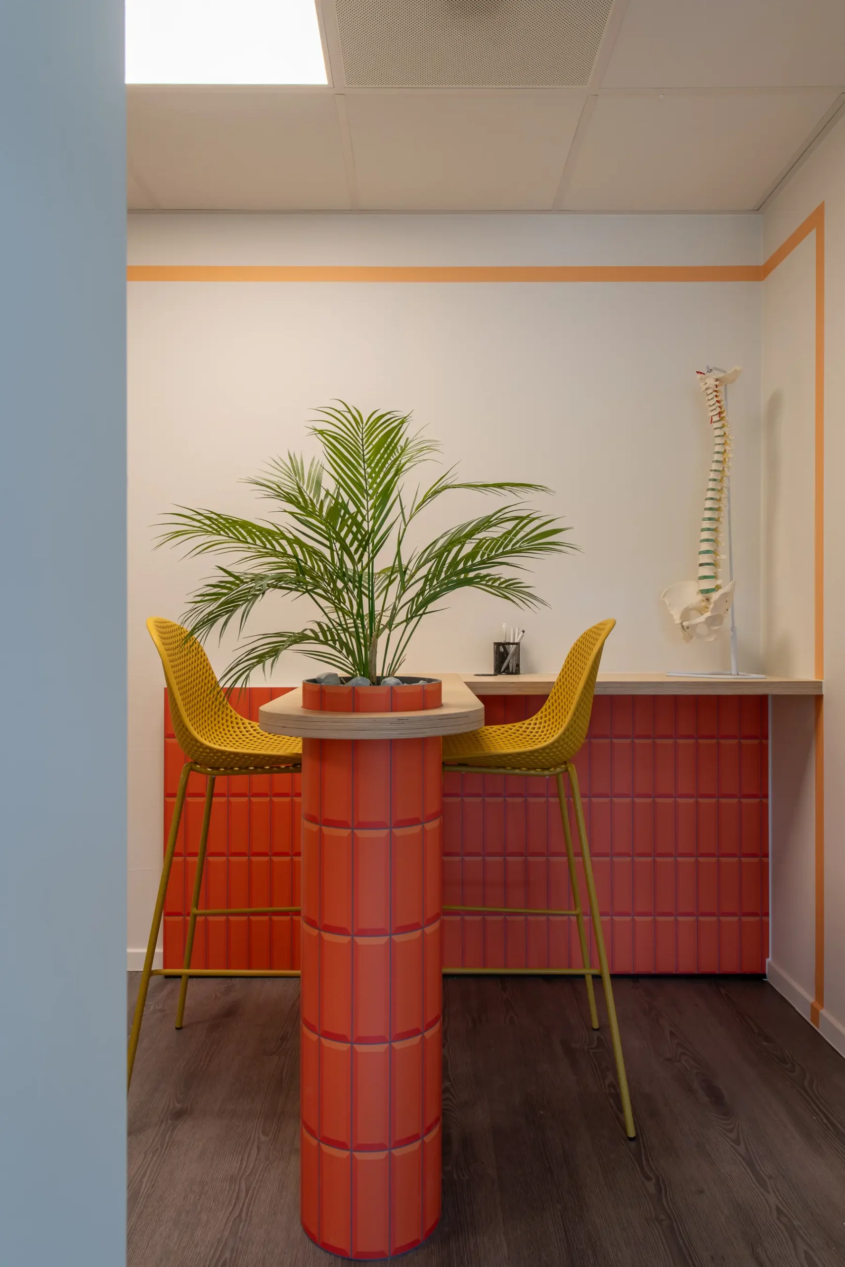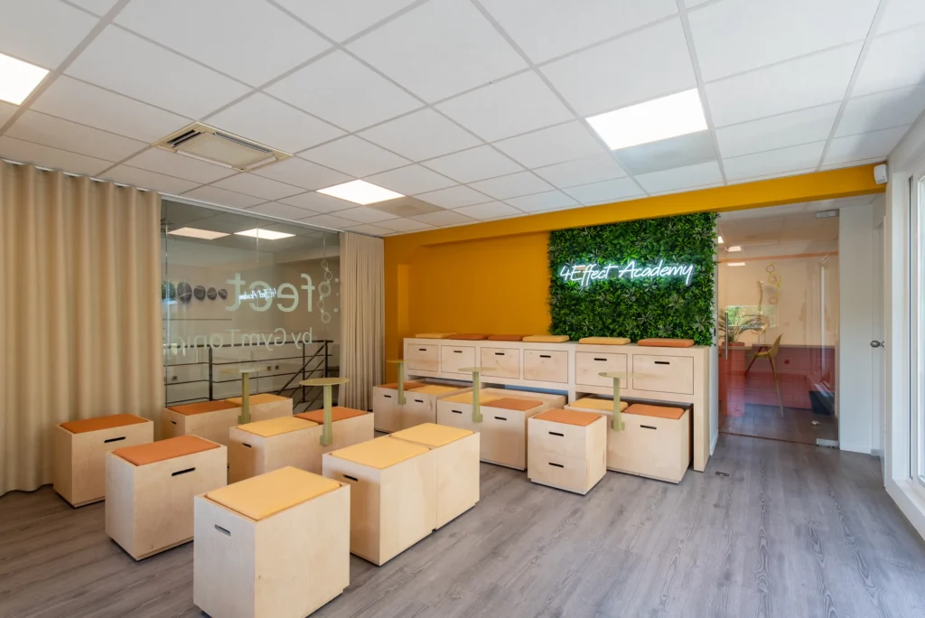 Voor de dynamische samenwerking tussen Groepspraktijk 4Effect en sport- en gezondheidscentrum Gymtonic hebben we een inspirerende en functionele omgeving gecreëerd. Ons ontwerp omvat niet alleen een aangenaam kantoor voor de medewerkers die de sporters van Gymtonic begeleiden, maar ademt ook een gezellige en dynamische sfeer uit die past bij beide partijen.